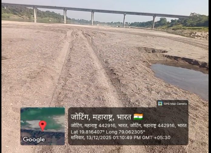 कोरपना तालुक्यातील (वनोजा) झोटिंग घाटावरून पैनगंगा नदीपात्रातून हजारो ब्रास रेती चोरीला