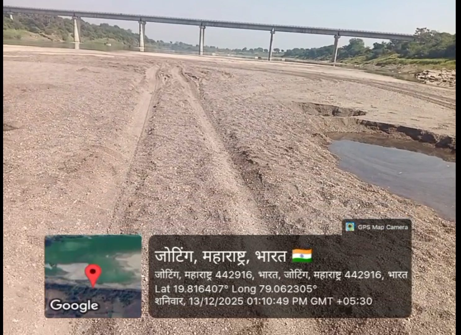 हनुमंत पेंदोर यांच्या शेतातून नदीपात्रात जाण्यासाठी बनविला रस्ता रेती तस्करीसाठी हनुमंत पेंदोर यांच्या शेतातून थेट नदीपात्रात जाण्याकरिता बेकायदेशीर रस्ता तयार करण्यात आला आहे. या रस्त्यावरून अवजड वाहने सातत्याने नदीपात्रात प्रवेश करत असून नदीपात्रातून मोठ्या प्रमाणात रेतीची उचल केली जात आहे .